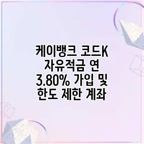 최근 온라인 저축상품이 많은 인기를 끌면서, 특히 케이뱅크 자유적금은 높은 금리와 편리한 가입 절차로 많은 이들의 관심을 받고 있습니다. 이번 포스팅에서는 코드K 연 3.80%를 제공하는 특별 적금 상품과 함께, 적금의 한도 제한, 그리고 온라인 저축상품의 특징과 전략까지 상세하게 설명드리려고 합니다. 저축을 시작하려는 분들에게 유용한 정보뿐만 아니라, 지금 바로 가입할 수 있는 방법도 안내드릴 테니 끝까지 천천히 따라오세요. 이제부터 케이뱅크의 인기 적금 상품들의 특징과 가입 방법, 그리고 금리와 한도 제한에 대한 세부 내용을 차근차근 살펴보겠습니다.